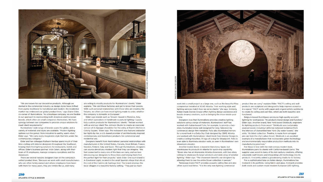 Illuminations Lighting, Atlanta’s premier modern lighting showroom, located in the heart of the bustling design district at the Galleries of Peachtree Hills, has proudly served the Atlanta design community for over 30 years. We attribute our success to the excellent quality and design of the products we represent and to our commitment to outstanding customer service.